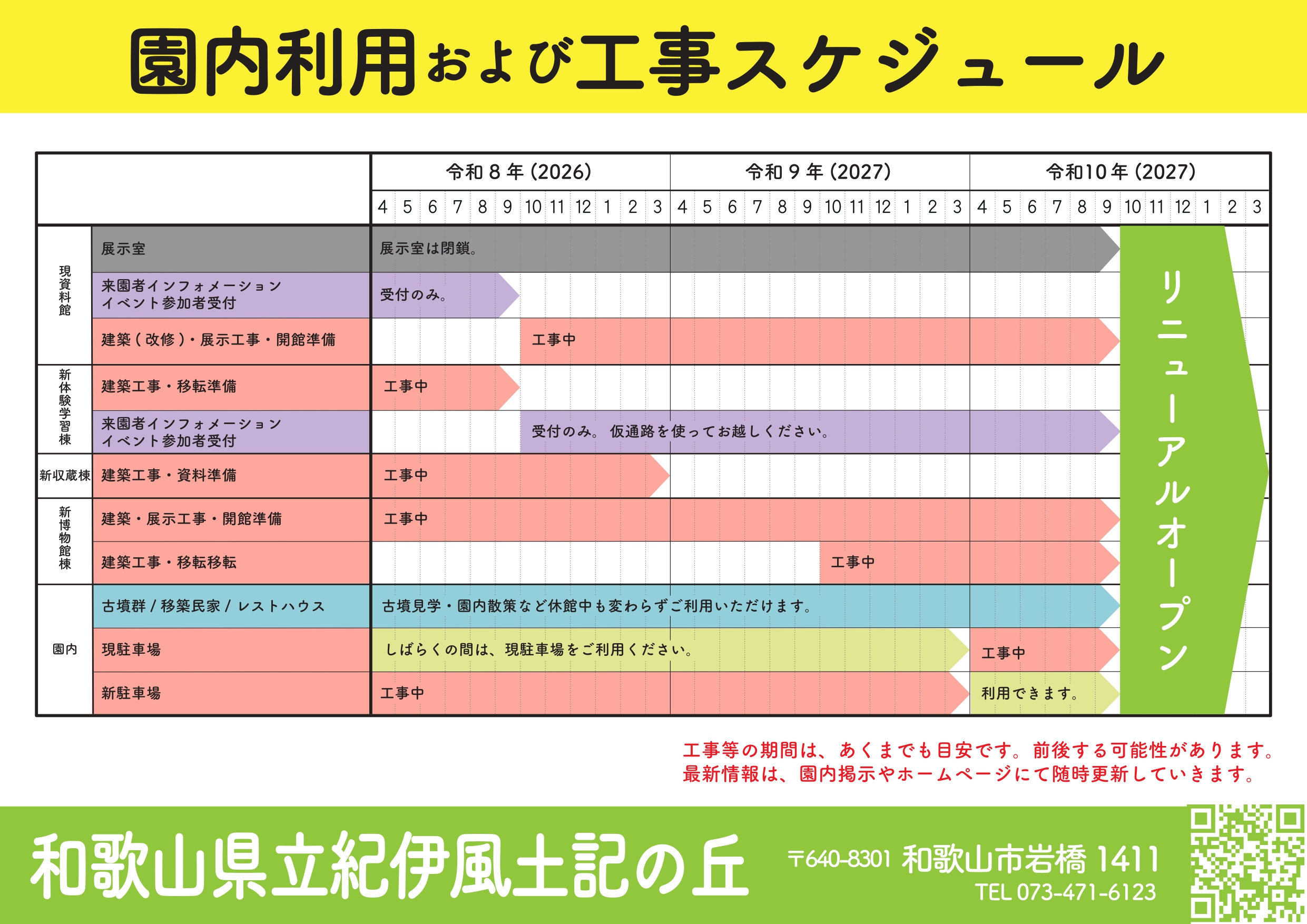 開館時期、イベント及び工事状況等の詳細は、決定次第、HPにてお知らせいたします。