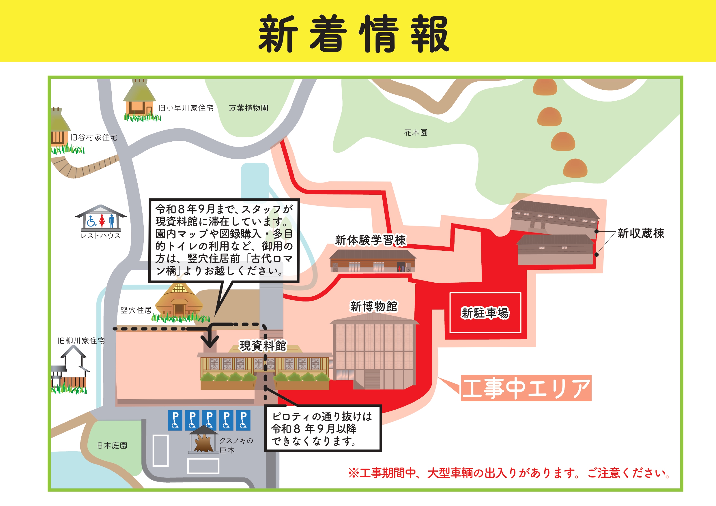 休館期間中、現資料館及び園内一部工事エリアを除き、引き続き園内はご利用いただけます。