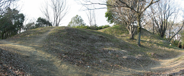 知事塚古墳の西側80mに位置し、岩橋丘陵の主稜線からやや北に張り出した尾根上に立地する。